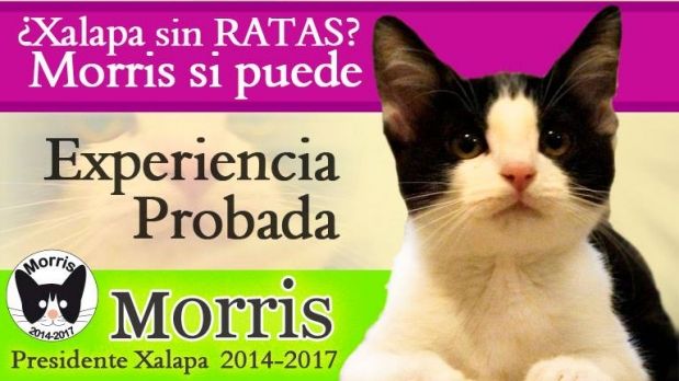Ha tutto il sapore di una bufala, eppure la notizia è vera: c’è un gatto candidato sindaco. Accade in quel di Xalapa, capitale di Veracruz, Messico, cittadina che potrebbe essere la prima nella storia amministrata da un quadrupede. Morris, così si chiama l’intraprendente felino, gode già di un grandissimo seguito – oltre 120.000 adesioni sulla pagina facebook, ben più del nuovo sindaco di Roma, Ignazio Marino, fermo a poco più di 90.000 – e il prossimo 7 luglio potrebbe pertanto vedersi destinatario di parecchi voti, anche se di fatto il simbolo della sua lista non è stato ammesso sulla scheda elettorale.