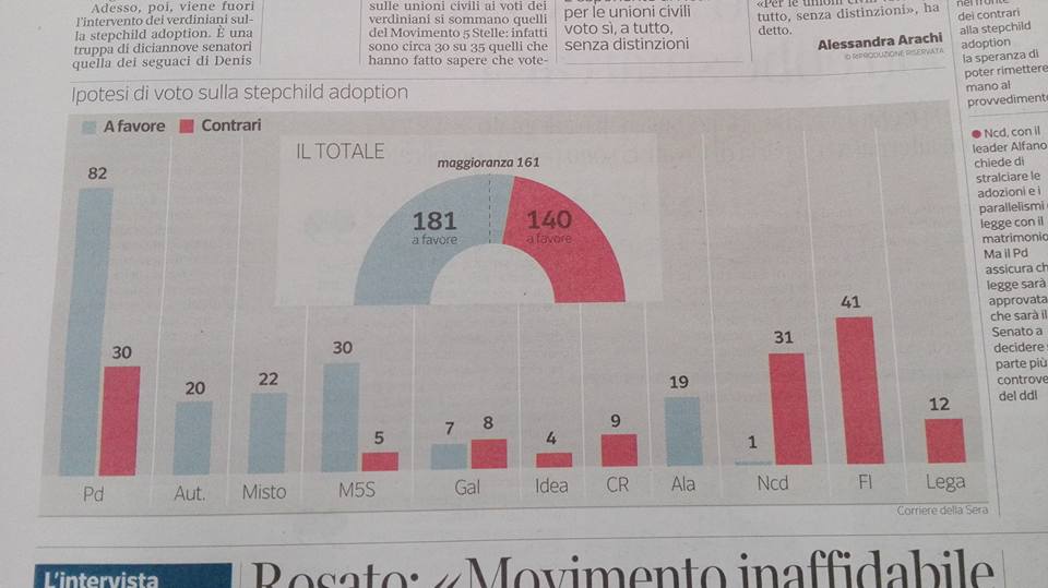 Sull’imparzialità del Corriere della Sera sui temi eticamente sensibili – da quando, nel 2005, si schierò platealmente a favore del referendum abrogativo della Legge 40, con tanto di dichiarazione in prima pagina – non avevamo dubbi, ma l’unanimità sulle unioni civili, prima di oggi, non l’aveva prevista nessuno.