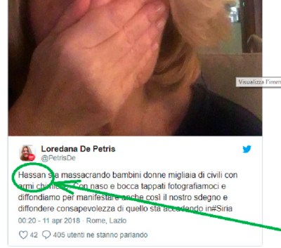 Si è mossa tutta «l’Italia migliore» – quella dei Saviano e delle Boldrini, dei Volo e delle Littizzetto – in favore dell’appello, lanciato ieri da un blogger siriano, di fotografarsi con la bocca e il naso coperti per protestare contro l’uso delle presunte armi chimiche a Douma. Tutti a coprirsi bocca e naso. Solo che il tiranno da abbattere, Bashar al-Assad, a seconda dei post diventa «Hassad» (Luciana Littizzetto) o «Hassan» (senatrice De Petris, Leu), e tu – che mastichi la politica estera così così – ti senti improvvisamente un opinionista di primo livello, davanti a questo gregge radical chic, che non sa nulla di ciò di cui parla, che già si è scordato delle «guerre buone» in Iraq o Libia (sempre un mostro da abbattere con bombe intelligentissime, a un passo dal dottorato), ma che in fondo, stavolta, una certezza l’ha: ha stato Hussein. Se i morti non fossero morti, la Siria non fosse martoriata da anni di conflitto e non fossimo sull’orlo della terza guerra mondiale, che i pacifisti part time si augurano a loro in saputa, verrebbe da ridere.